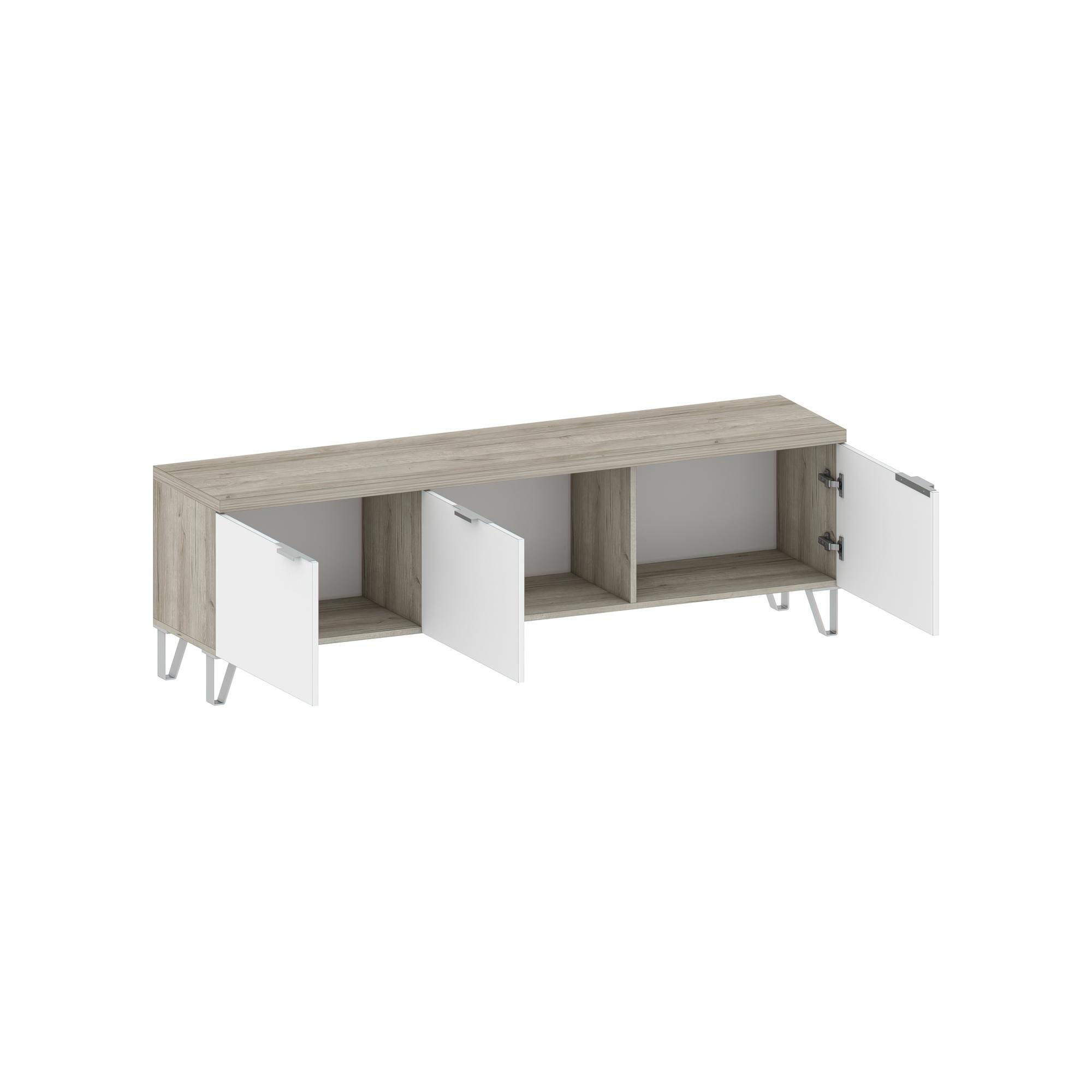 Прямая тумба имеет три двери (глухих) с использованием механизма плавного закрывания