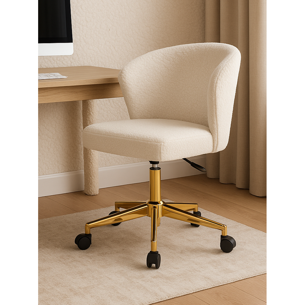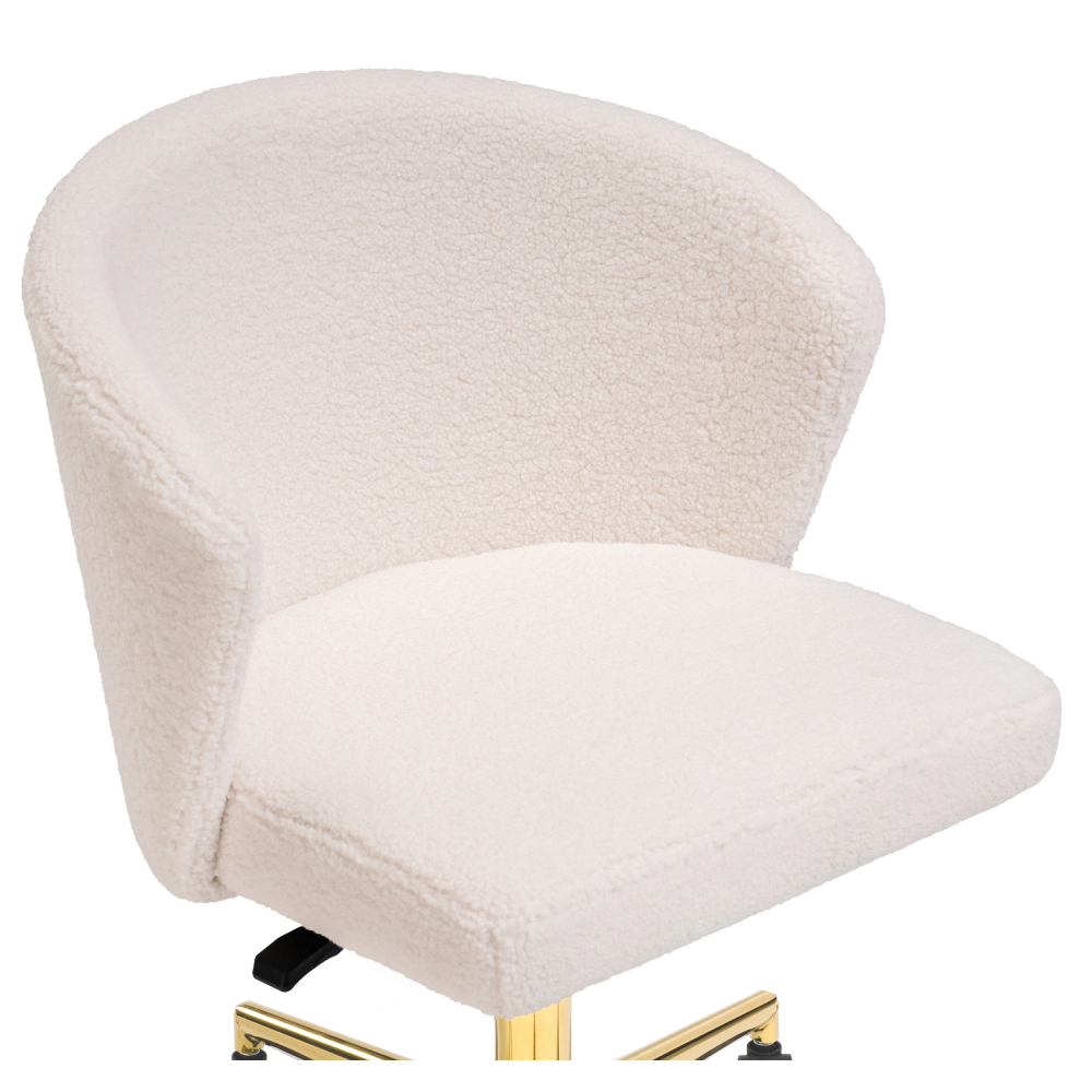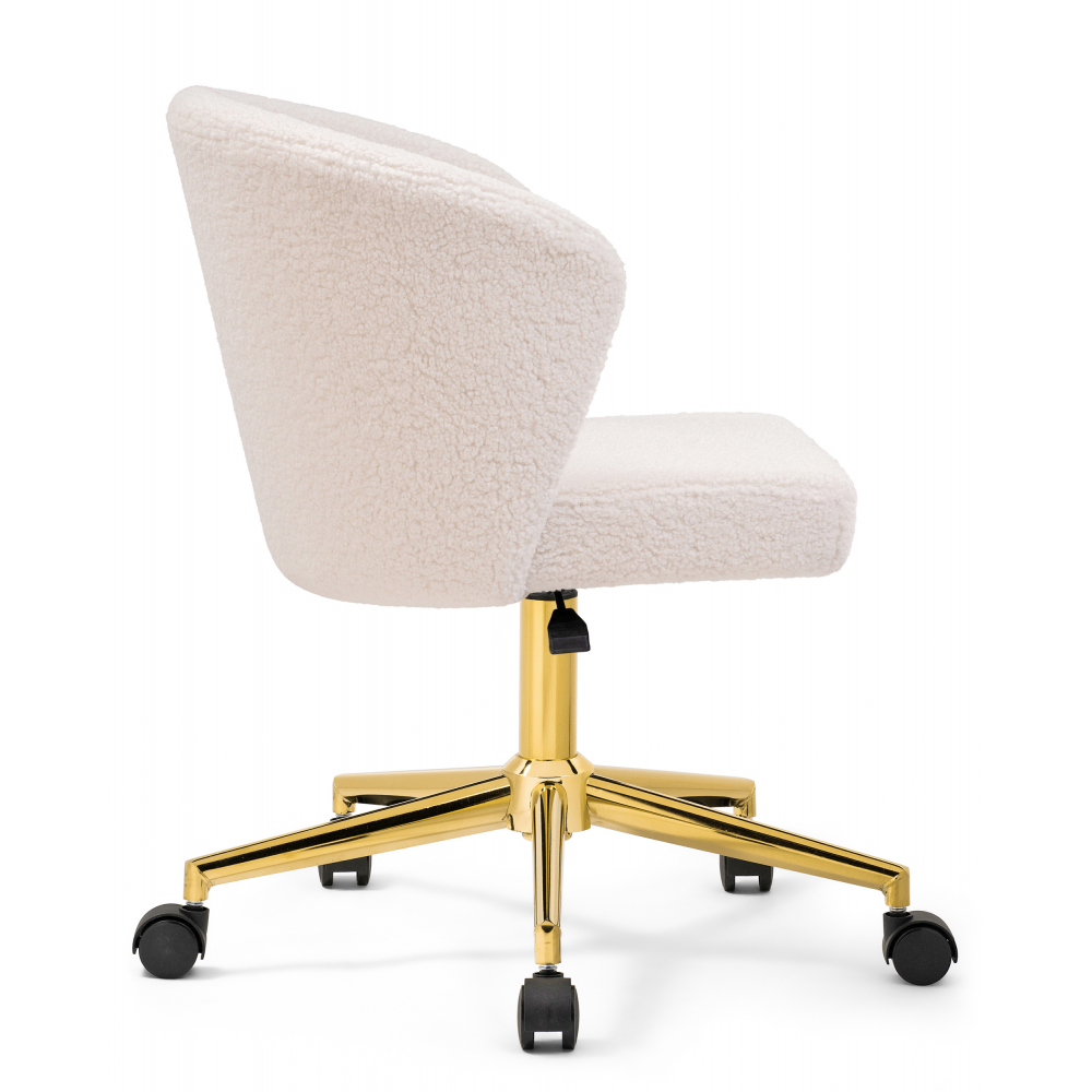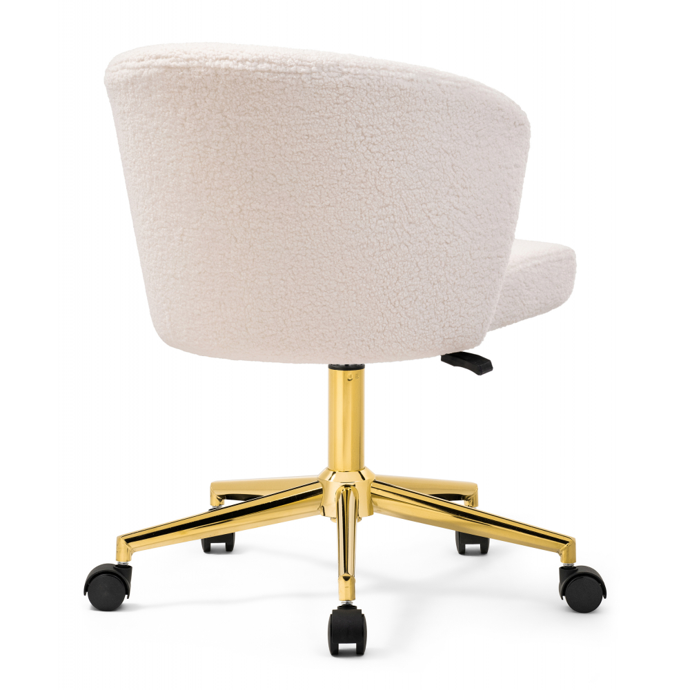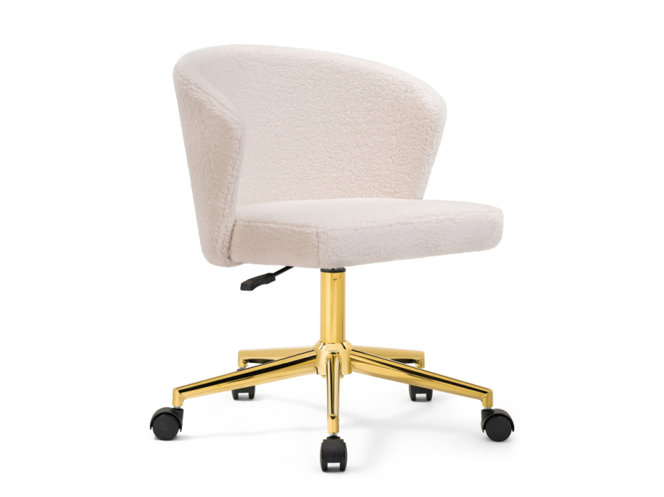 Стул Lika white teddy имеет плотную ткань букле, приятный на ощупь, повышенная износостойкость. Металлическая крестовина рассчитанная до 130кг. Прорезиненные колёса берегут покрытие. Тихое передвижение по полу