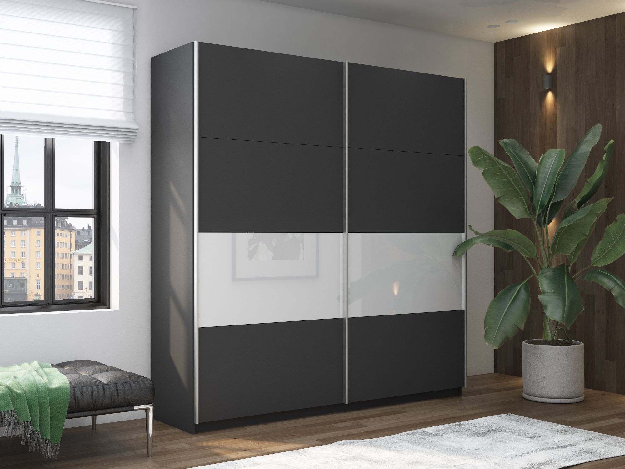 Отзывы о Столплит Шкаф-купе Прайм 2х дверный ДСП/Белый Глянец 160х57х230 Темно-серый