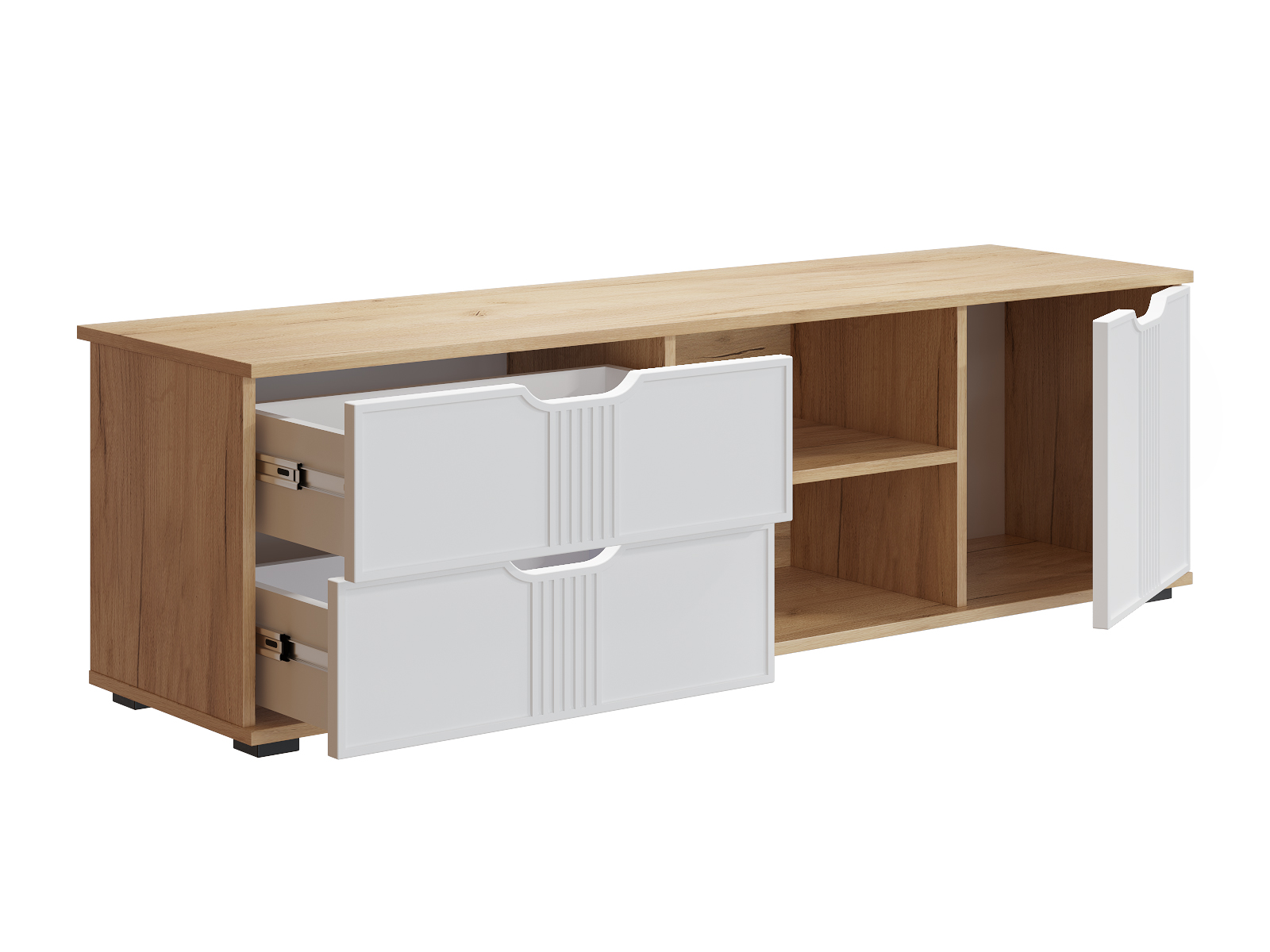 Тумба для ТВ Эмилия ЭЛ-40 подойдет для гостиной квартиры или загородного дома. Столешница изготовлена из ЛДСП толщиной 16 мм. Дно ящиков двп 3 мм. В ящиках используются телескопические направляющие полного выдвижения без доводчиков. Высота опоры 20 мм. Фурнитура: петли с доводчиками.