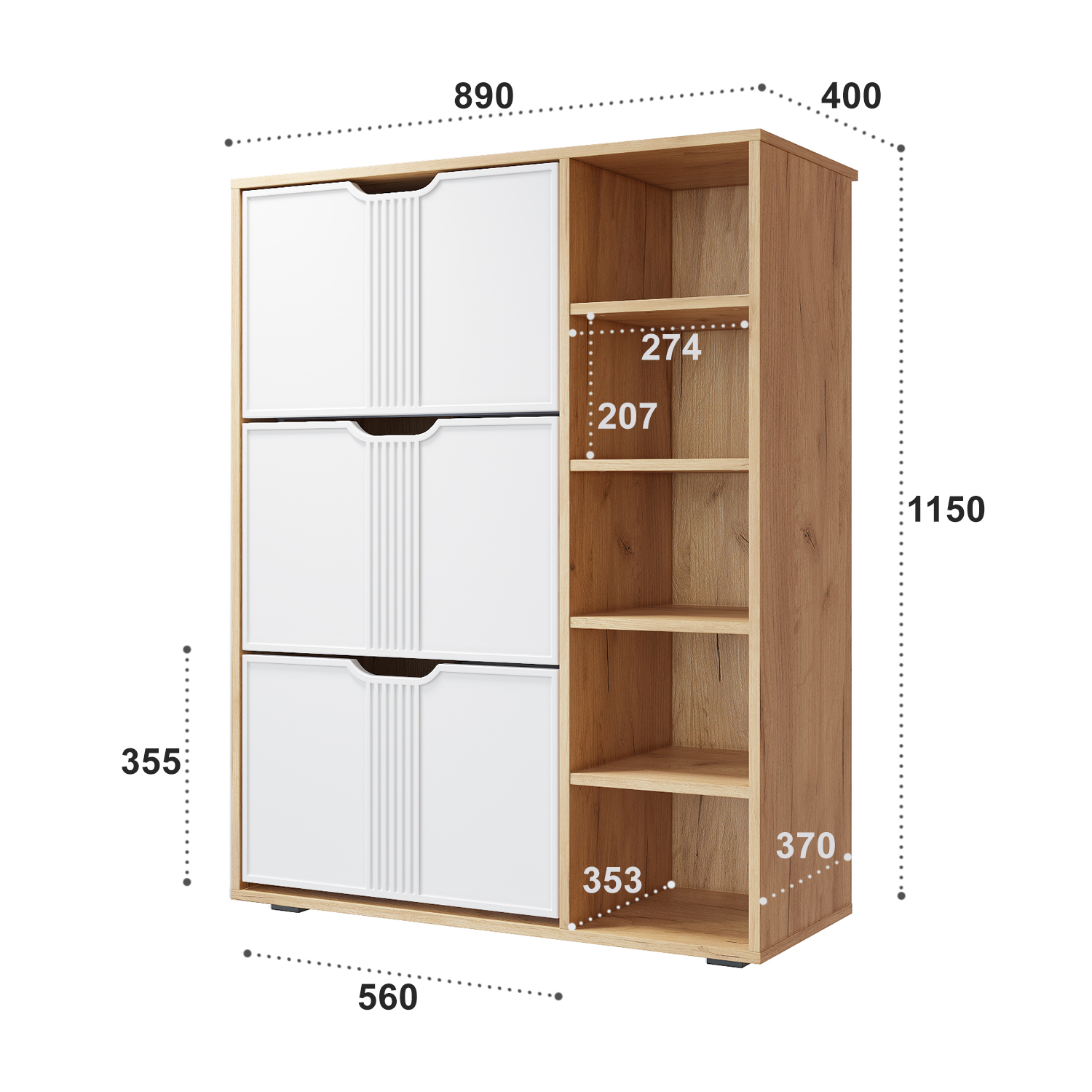 Тумба для обуви Эмилия ЭЛ-42 поможет создать уютную атмосферу в вашей прихожей. Изделие навсегда решит проблему разбросанной обуви по всему коридору. Тумба оснащена четырьмя полками и отделениями со специальными отсеками для хранения обуви. Свес крышки в 30 мм обеспечит прилегание к стене с любым плинтусом. Высота опоры 20 мм.