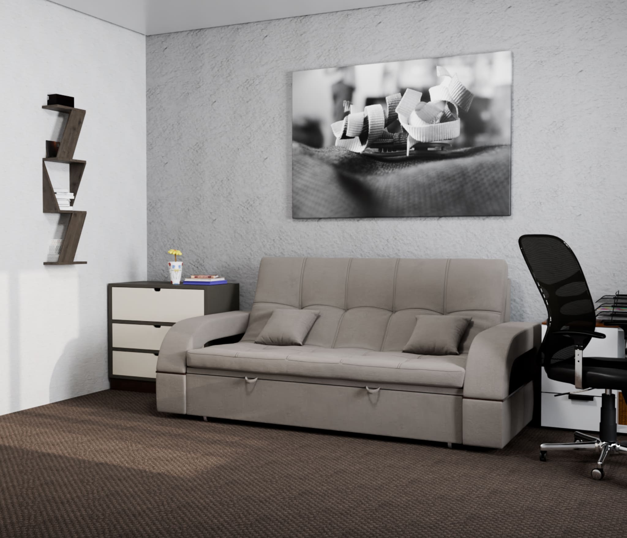 Диван "Майами-1" оснащен механизмом трансформации "Венеция", который позволяет быстро и легко раскладывать его в кровать. Этот механизм обеспечивает комфортное и удобное спальное место.