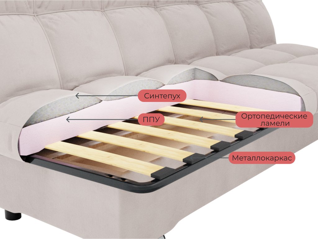 Задняя стенка дивана выполнена из ткани основы;