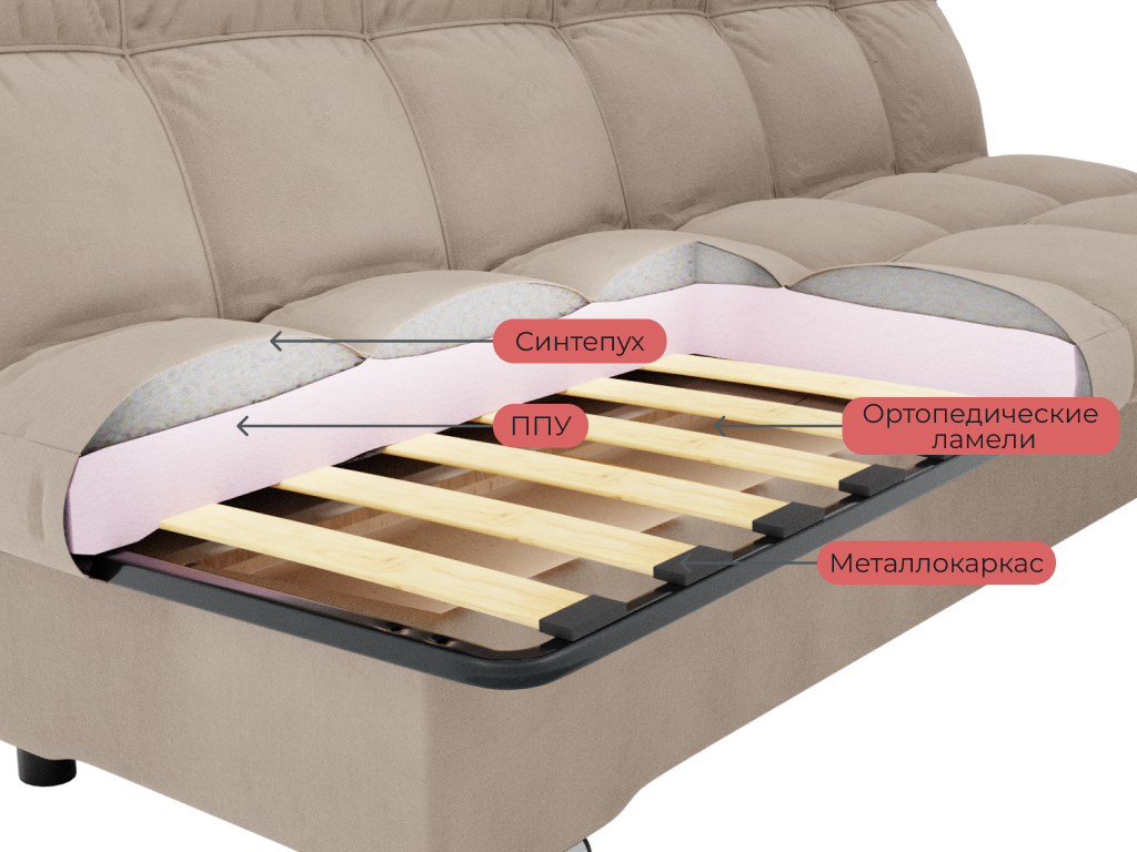 Задняя стенка дивана выполнена из ткани основы;