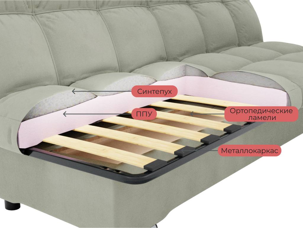 Задняя стенка дивана выполнена из ткани основы;