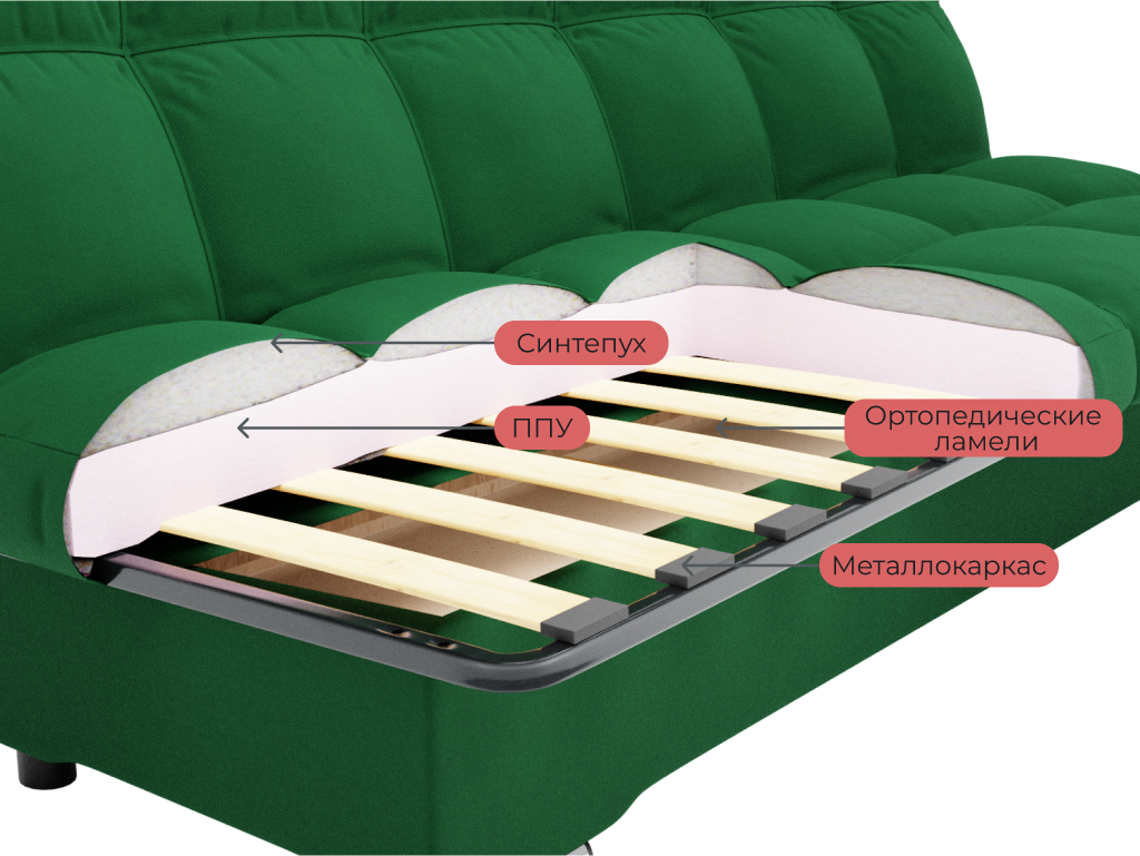 Отзывы о Столплит Прямой диван Финка,книжка,велюр Зеленый